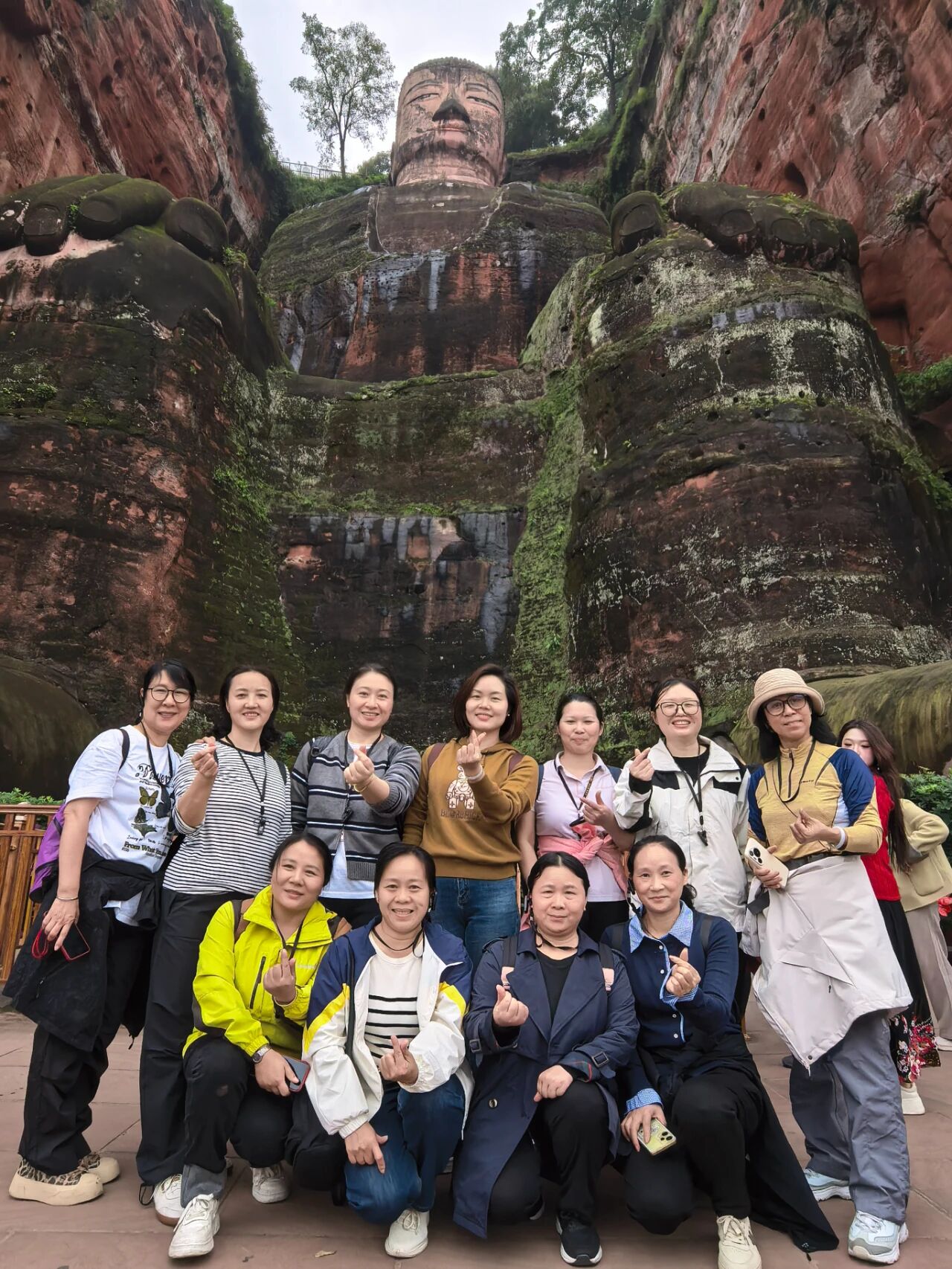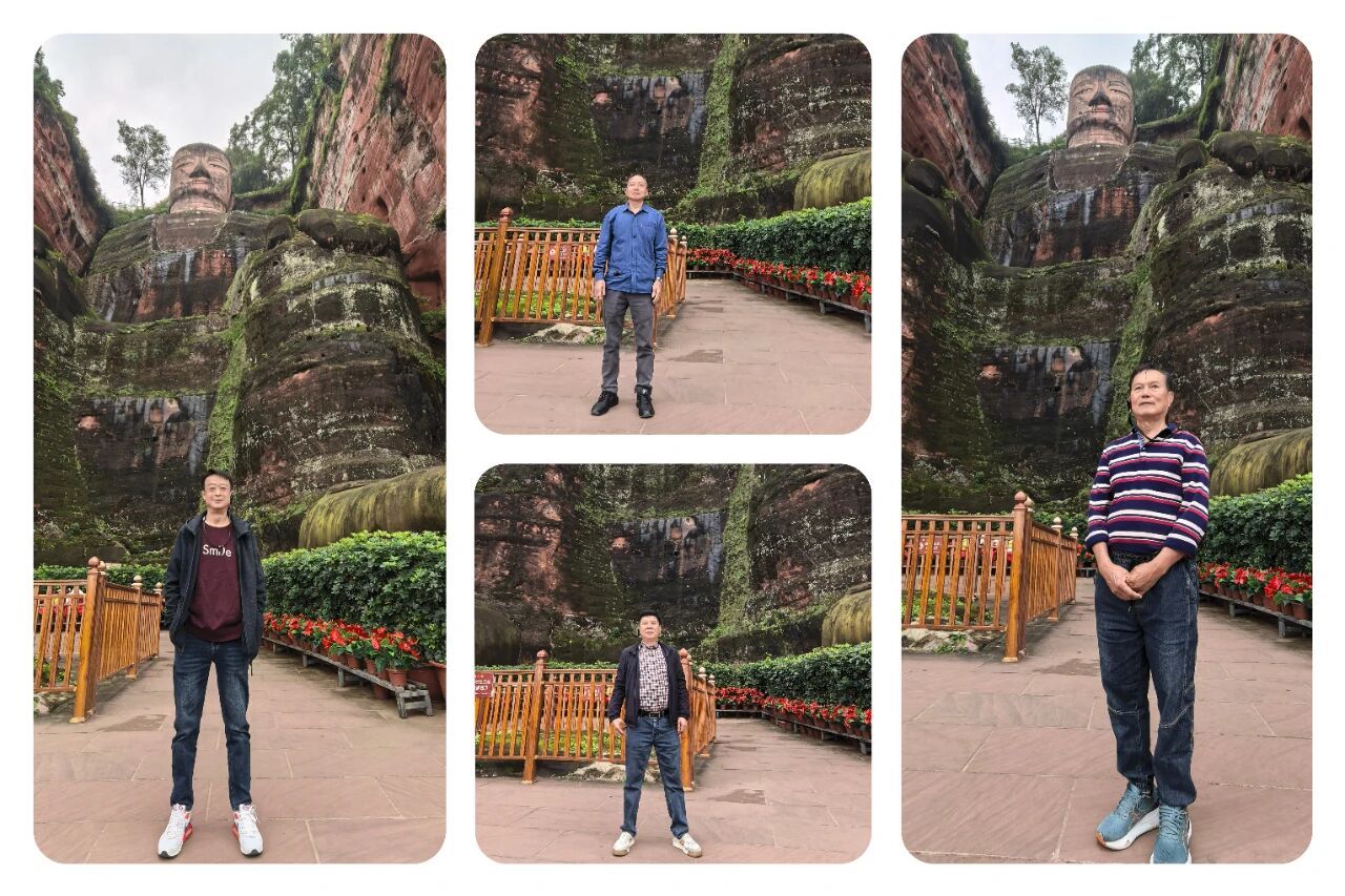 清晨,团队乘车前往乐山。在乐山大佛景区门前,团队手持“ 点燃激情梦想 展现魅力艾麦”的红色横幅合影,身后古朴的景区大门与“警民一家”的标语相映成趣。随后,大家沿栈道近距离瞻仰大佛,感受千年石刻的宏伟与沧桑。午后,团队游玩了充满烟火气的苏稽古镇,在青石板路与老宅茶馆中体味川西民俗。傍晚转赴峨眉山,入住酒店后,一场《圣象峨眉》演出以灵动舞姿与非遗文化,为这一天画上圆满句号。