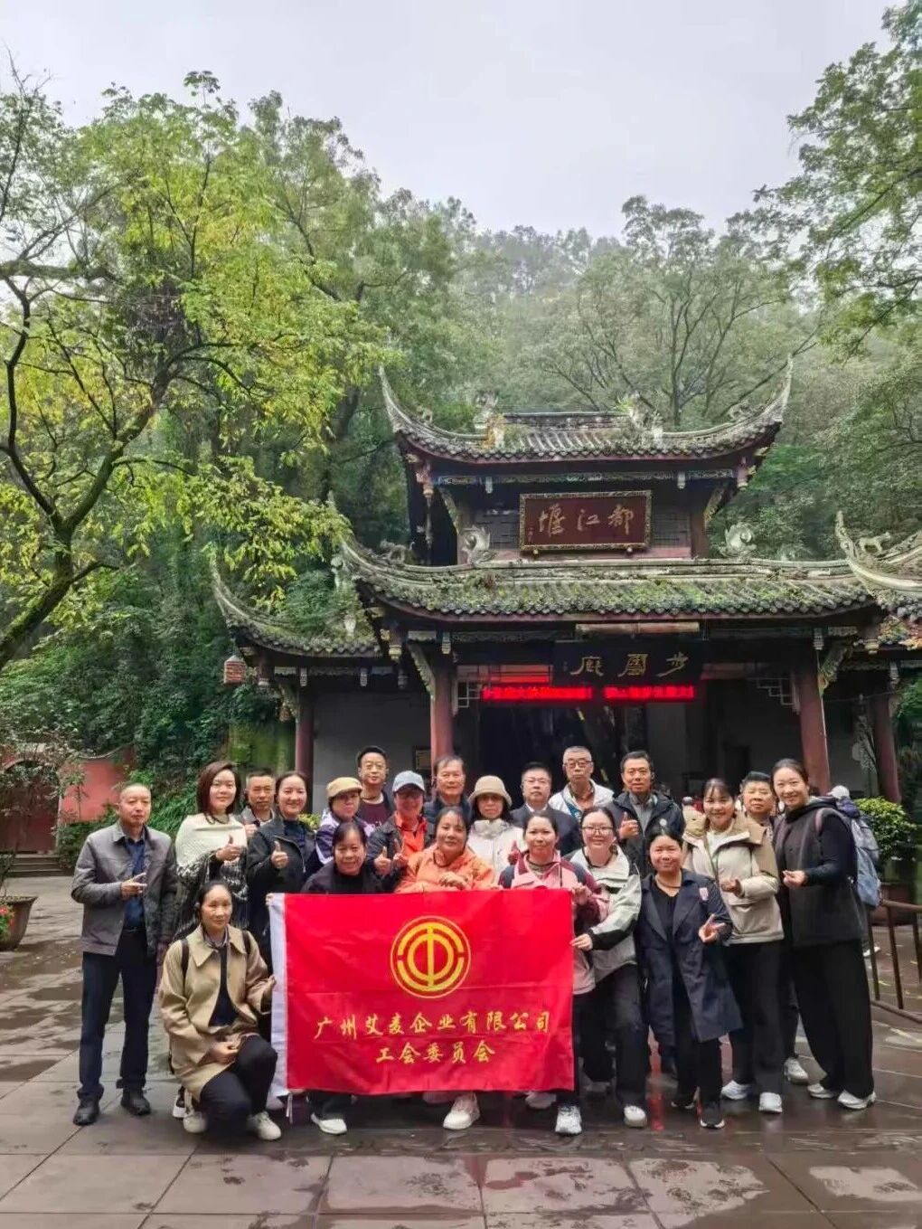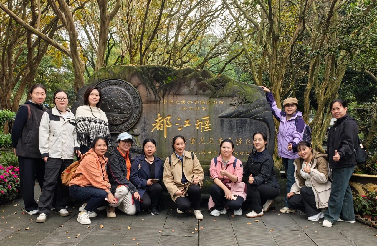 最后一天,团队走进都江堰景区。在标志性的传统建筑前,团队手持党支部与工会旗帜合影,笑容洋溢。通过讲解,大家深刻理解了李冰父子“道法自然”的治水哲学,无不为古人智慧惊叹。午后,团队乘车返回成都东站,踏上归途。沿途,党支部与工会成员在多个景点记录下团结奋进的瞬间,展现了艾麦人积极向上的精神风貌。