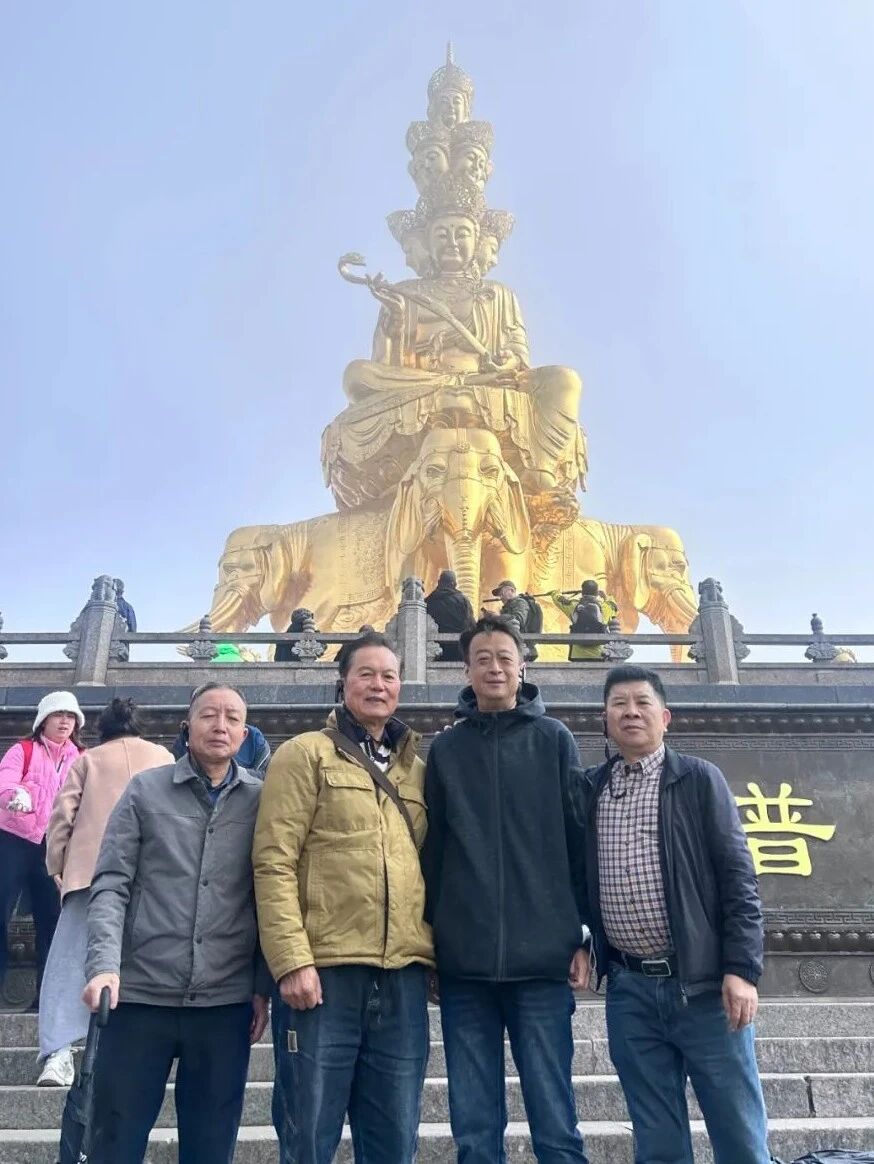 晨光中,团队踏上峨眉山之旅。缆车穿云破雾,直上金顶。在十方普贤圣像前,大家合影留念,党支部与工会的旗帜在云海中格外醒目。午后下山,奔赴都江堰,夜游南桥,看岷江水在灯影下奔腾不息,感受“天府之源”的千年智慧与浪漫。