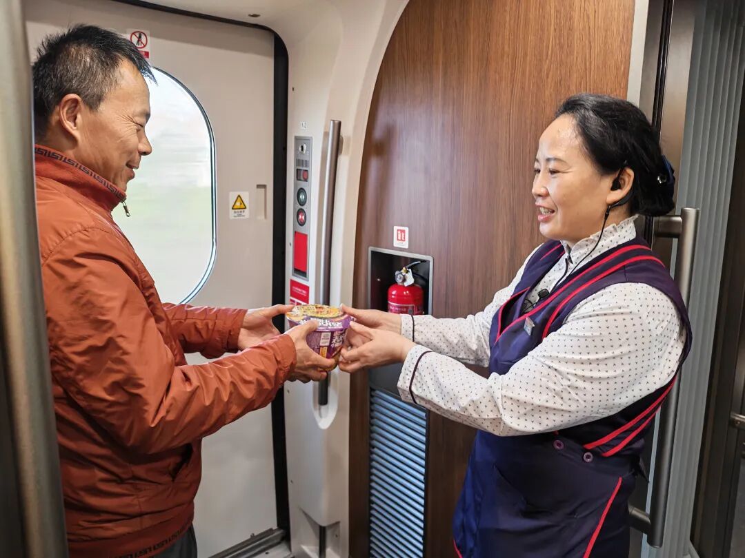 忙碌中,总有不期而遇的善意让人动容。有旅客看到保洁员拎着沉重的垃圾袋,主动上前帮忙撑开袋口;更多旅客会在保洁员清扫时,主动收起脚、递出垃圾,一句“谢谢”“麻烦你了”,就足以驱散他们所有的疲惫。“虽然不能回家,但看着旅客们平安抵达,脸上露出笑容,就觉得一切都值得。”赵彩平说。当第一趟春运列车在夜色中抵达终点站,保洁员们还要打包垃圾、补充备品,为下一组旅客的启程做好准备。他们的身影,在车厢的灯光下显得格外温暖。